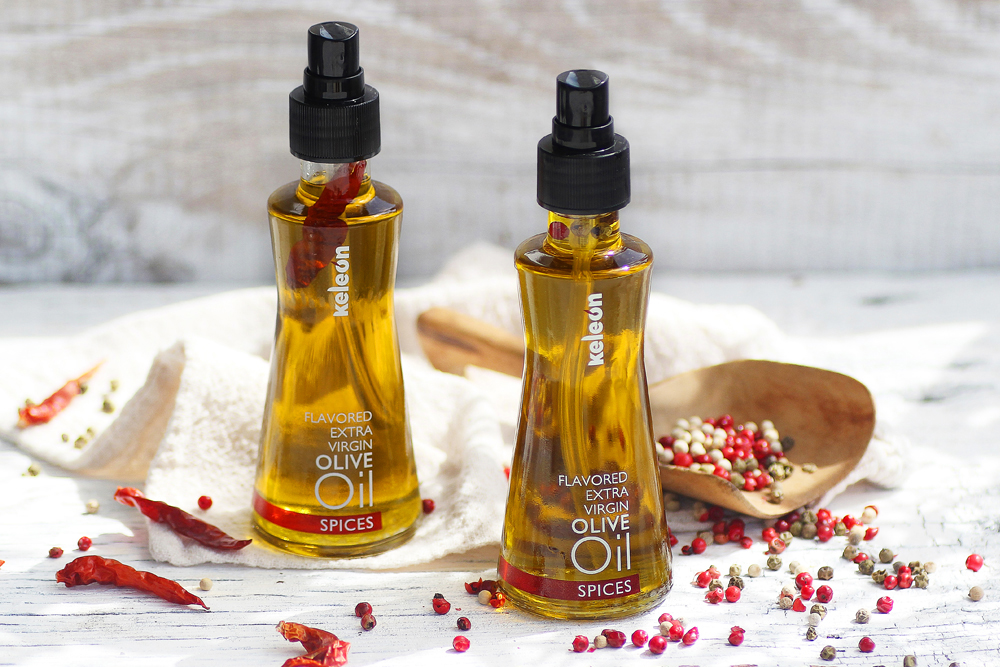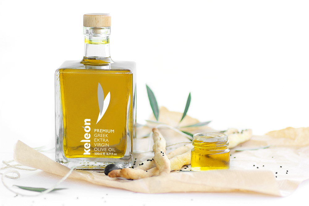 H αφαιρετική απεικόνιση του συμβόλου της καρδιάς, όπως προκύπτει από τη σύνθεση δύο φύλλων ελιάς, αφηγείται την ταυτότητα και τον χαρακτήρα του εξαιρετικού παρθένου ελαιόλαδου Keleon, καθώς και της ισορροπημένης και υγιεινής μεσογειακής διατροφής που προσφέρει στον καταναλωτή του.