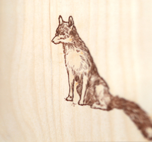 Επιλέγοντας να κινηθεί πέρα από την περιγραφική απεικόνιση που θα περίμενε κανείς για το προϊόν, στην ετικέτα του κρασιού Μπλε Αλεπού, χρησιμοποιούνται τα ίχνη του ζώου, ως εικαστικό στοιχείο, και η σχέση που αυτά αναπτύσσουν με το λευκό περιβάλλον, σε μια απλή καθαρή τυπογραφία.
