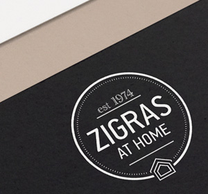 Μια εταιρική ταυτότητα με τη σύγχρονη εκδοχή της ρετρό αισθητικής που αποδίδει πλήρως τη ζωντανή και δυναμική πλευρά της εταιρείας που διαρκώς εξελίσσεται και αναδιαμορφώνεται πάντα στο ίδιο concept. Zigras at Home, ένα κατάστημα στο ιστορικό κέντρο της πόλης, που από το 1974 ασχολείται με τα είδη σπιτιού, τον σχεδιασμό και την κατασκευή επίπλου.
