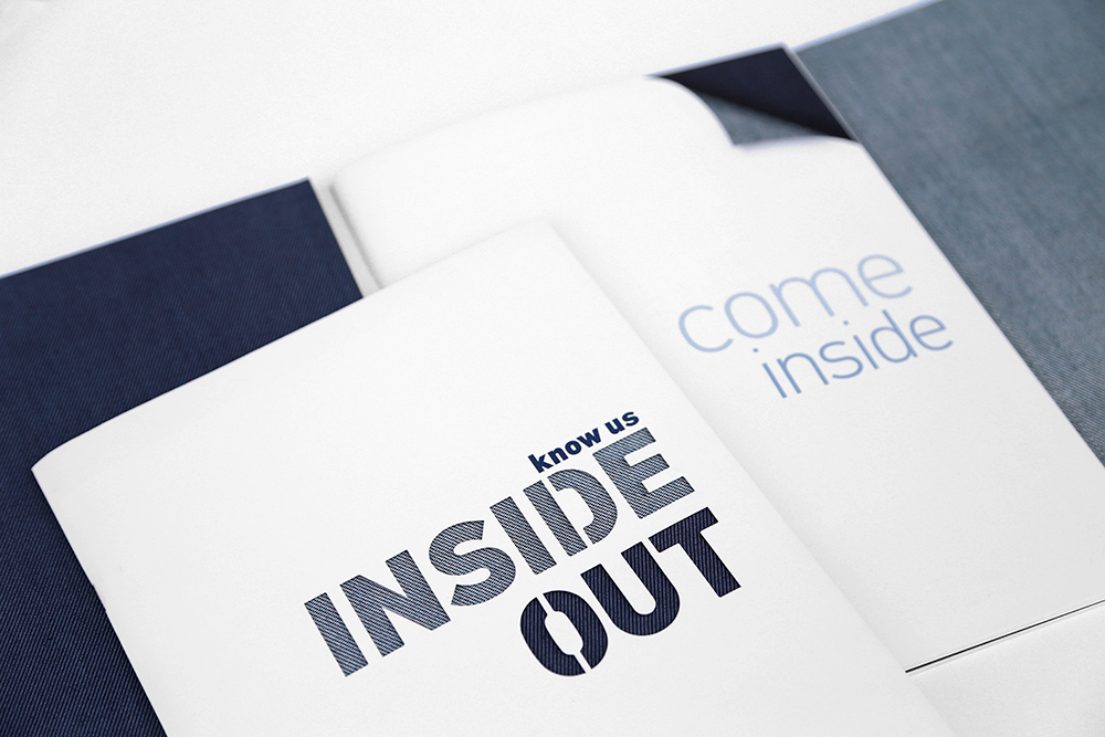 Το έντυπο του ετήσιου απολογισμού της Ελληνικής Υφαντουργίας ΑΕ ζητήθηκε να σχεδιαστεί με τρόπο που να μεταφέρει στον αναγνώστη του την αίσθηση της πλήρους οικονομικής διαφάνειας. H Pad επιλέγει τον τίτλο του εντύπου Know us inside out και τον αποδίδει οπτικά κάνοντας χρήση της εικόνας της υφής του βασικού προϊόντος της εταιρείας, του τζιν υφάσματος, το οποίο χρησιμοποιεί στη σύνθεση του εξωφύλλου και από τις δύο πλευρές του. Έτσι, παραδίδει μια έκδοση ιδιαίτερης αισθητικής και συνεπούς σημειολογίας.