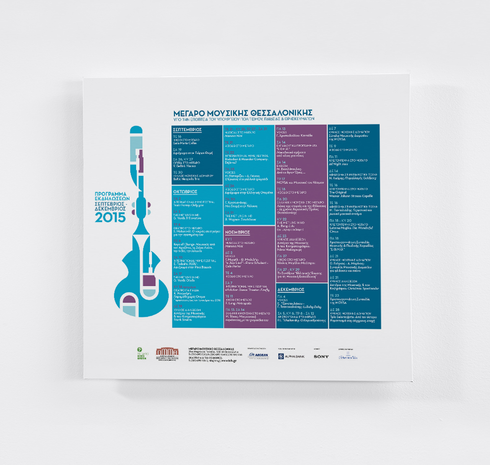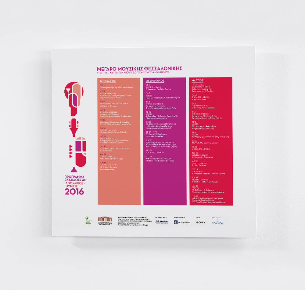 Η απεικόνιση ενός μουσικού συνόλου ήταν το concept πίσω από την εικονογράφηση των εκδόσεων του ετήσιου προγράμματος εκδηλώσεων του Μεγάρου Μουσικής Θεσσαλονίκης για την περίοδο 2015-16. Η Pad αποδομεί τις φόρμες διαφορετικών μουσικών οργάνων τις οποίες αναδομεί σε ένα καινούργιο σχήμα το οποίο γίνεται το φανταστικό μουσικό όργανο που μπορεί να παίξει όλους τους ήχους!