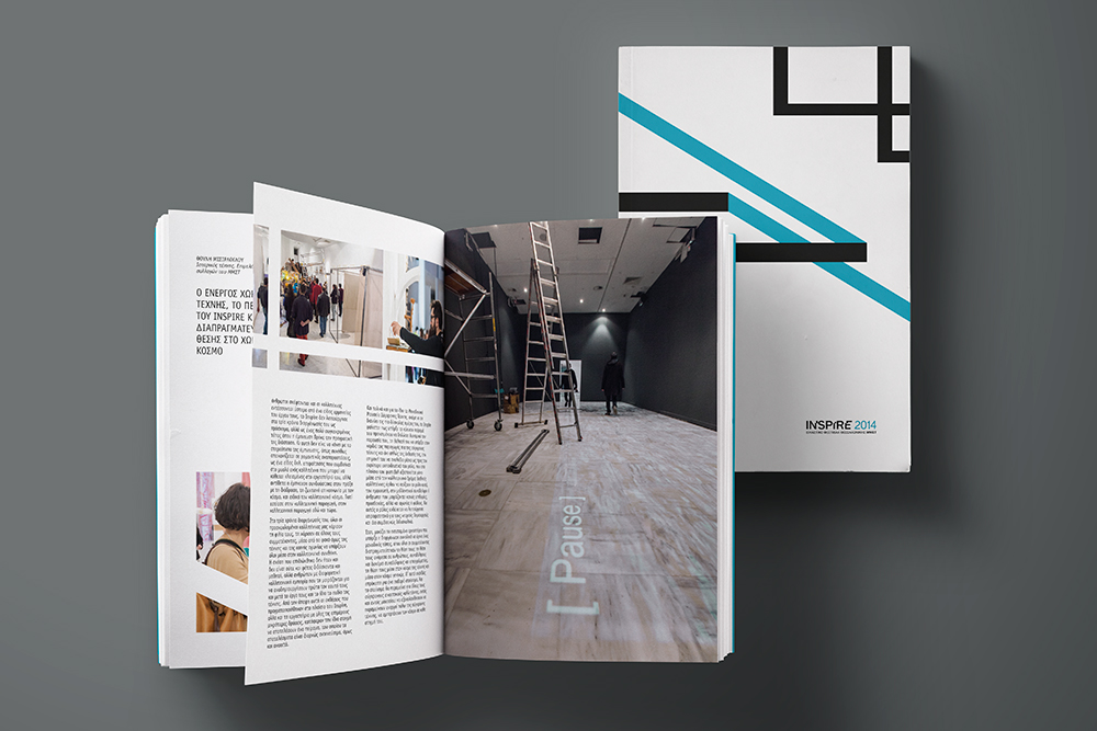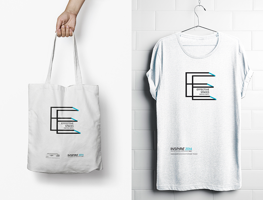 Το γράμμα Ε σε συνδυασμό με τον τίτλο (Ενεργοί Χώροι / Effective Spaces) του τρίτου Εικαστικού Φεστιβάλ “Inspire” βρίσκονται στον πυρήνα της συγκεκριμένης πρότασης. Αρχικό γράμμα τόσο της ελληνικής λέξης “Ενεργοί” όσο και της αγγλικής “Effective” αποδίδεται και αναπτύσσεται ως μια τρισδιάστατη κονστρουκτιβιστική κατασκευή. Μέσα από ένα οπτικό παιχνίδι κίνησης, ψευδαίσθησης και προοπτικής, νοητικών προβολών και επεκτάσεων προς διαφορετικές-αντιθετικές κατευθύνσεις, το Ε ορίζει μια δυναμική σύνθεση και, παράλληλα, έναν εύληπτο λογότυπο. Στις διάφορες γραφιστικές εφαρμογές το Ε χρησιμοποιείται στην ολότητά του αλλά, κυρίως, σε μεγεθυσμένες, γεωμετρικές λεπτομέρειές του, οι οποίες, με τη σειρά τους, ορίζουν και λειτουργούν ως «ενεργοί χώροι».
