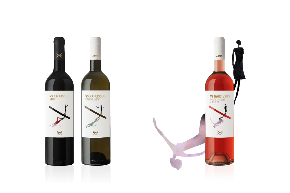Σχεδιασμός εταιρική ταυτότητα ASTIR X και σχεδιασμός ετικετών σειράς κρασιών Vs NARCISSUS Ερυθρός, Ροζέ και Λευκός.