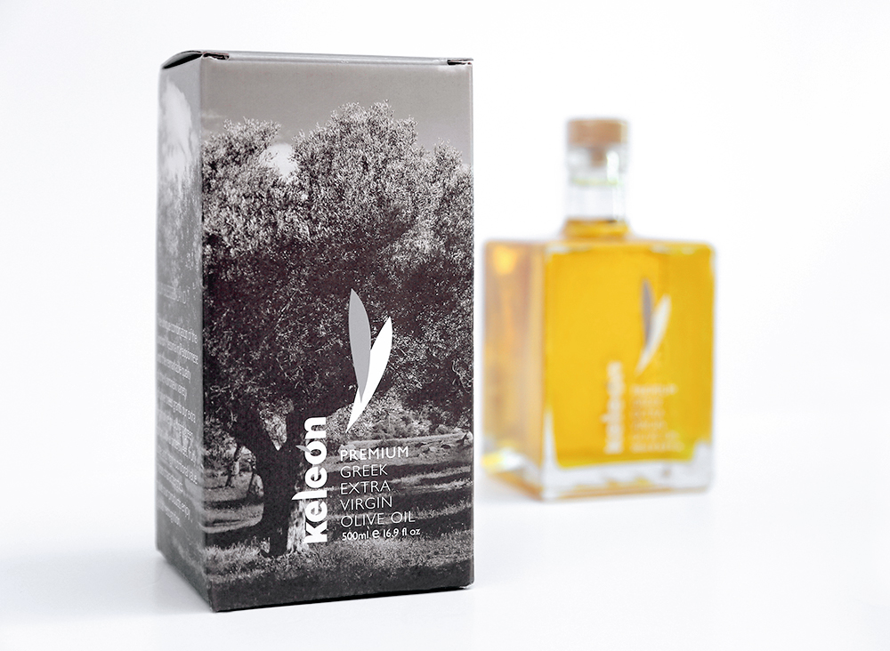 H αφαιρετική απεικόνιση του συμβόλου της καρδιάς, όπως προκύπτει από τη σύνθεση δύο φύλλων ελιάς, αφηγείται την ταυτότητα και τον χαρακτήρα του εξαιρετικού παρθένου ελαιόλαδου Keleon, καθώς και της ισορροπημένης και υγιεινής μεσογειακής διατροφής που προσφέρει στον καταναλωτή του.