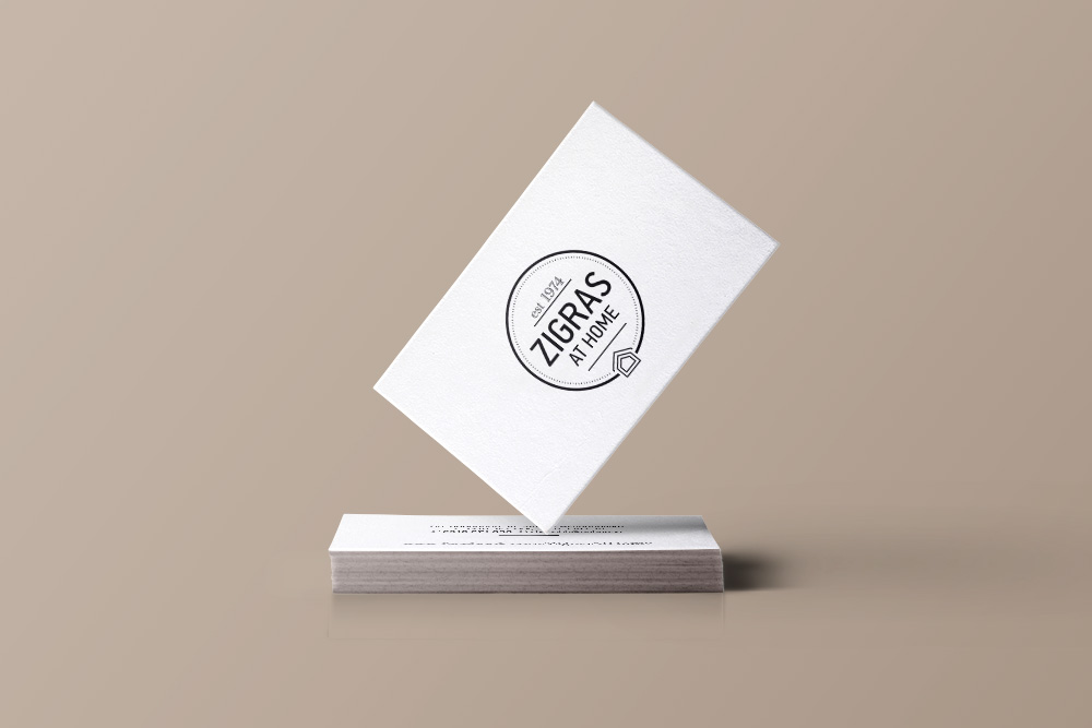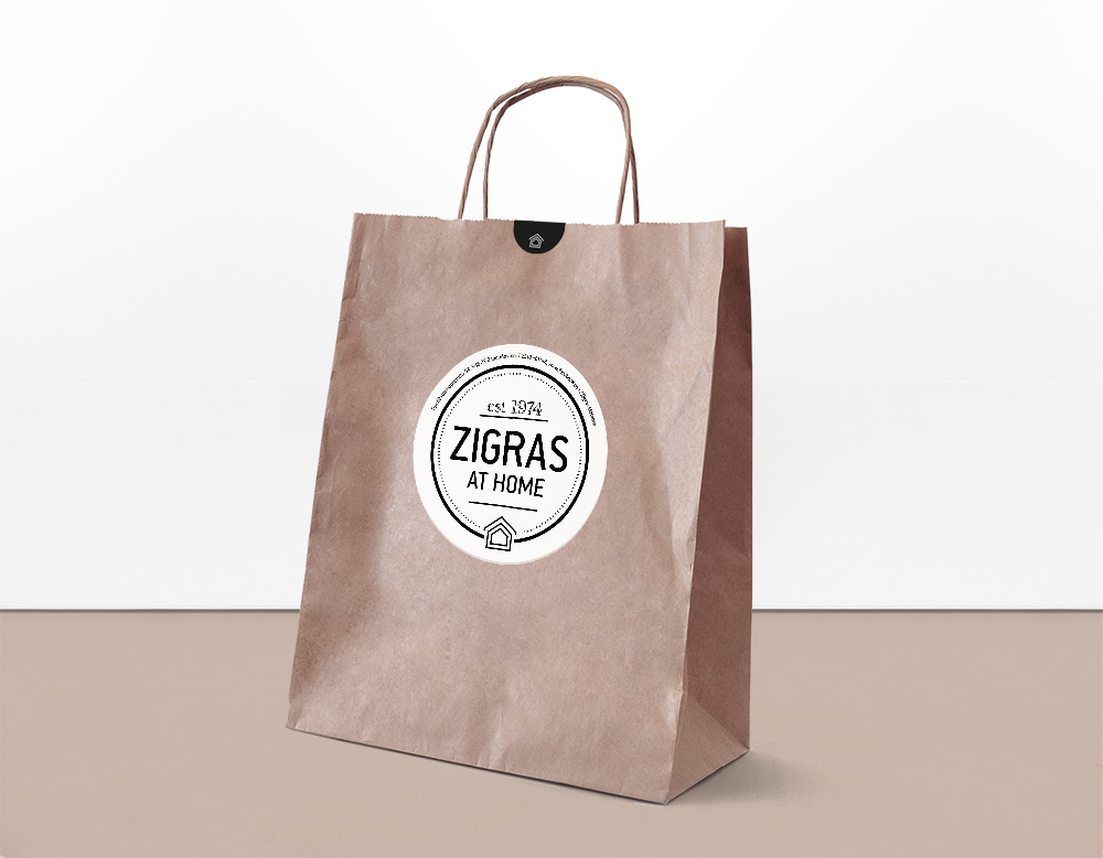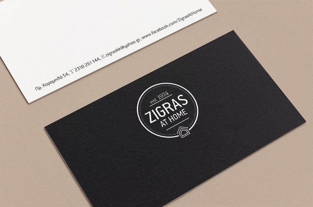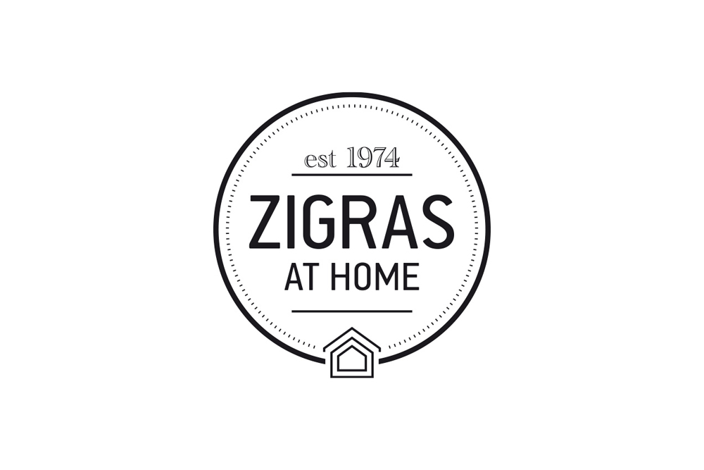 Μια εταιρική ταυτότητα με τη σύγχρονη εκδοχή της ρετρό αισθητικής που αποδίδει πλήρως τη ζωντανή και δυναμική πλευρά της εταιρείας που διαρκώς εξελίσσεται και αναδιαμορφώνεται πάντα στο ίδιο concept. Zigras at Home, ένα κατάστημα στο ιστορικό κέντρο της πόλης, που από το 1974 ασχολείται με τα είδη σπιτιού, τον σχεδιασμό και την κατασκευή επίπλου.