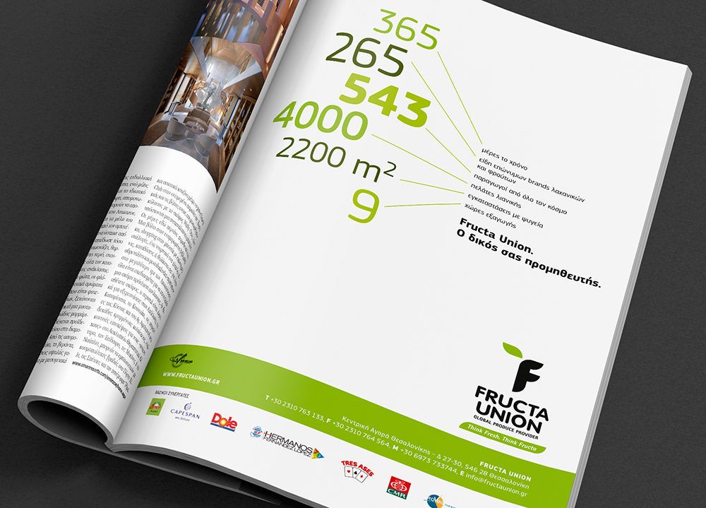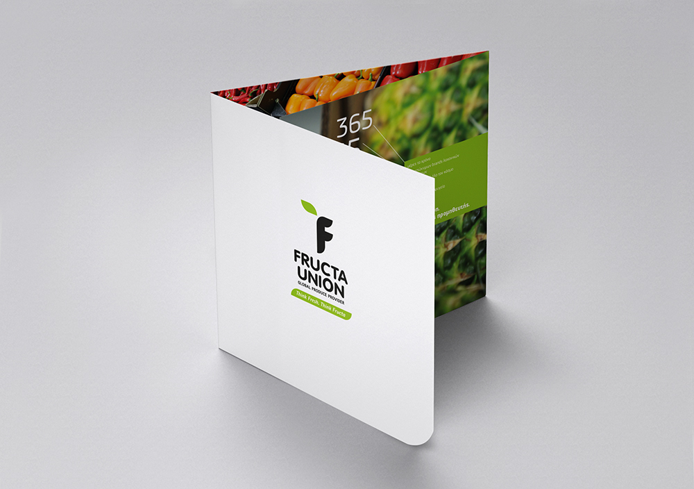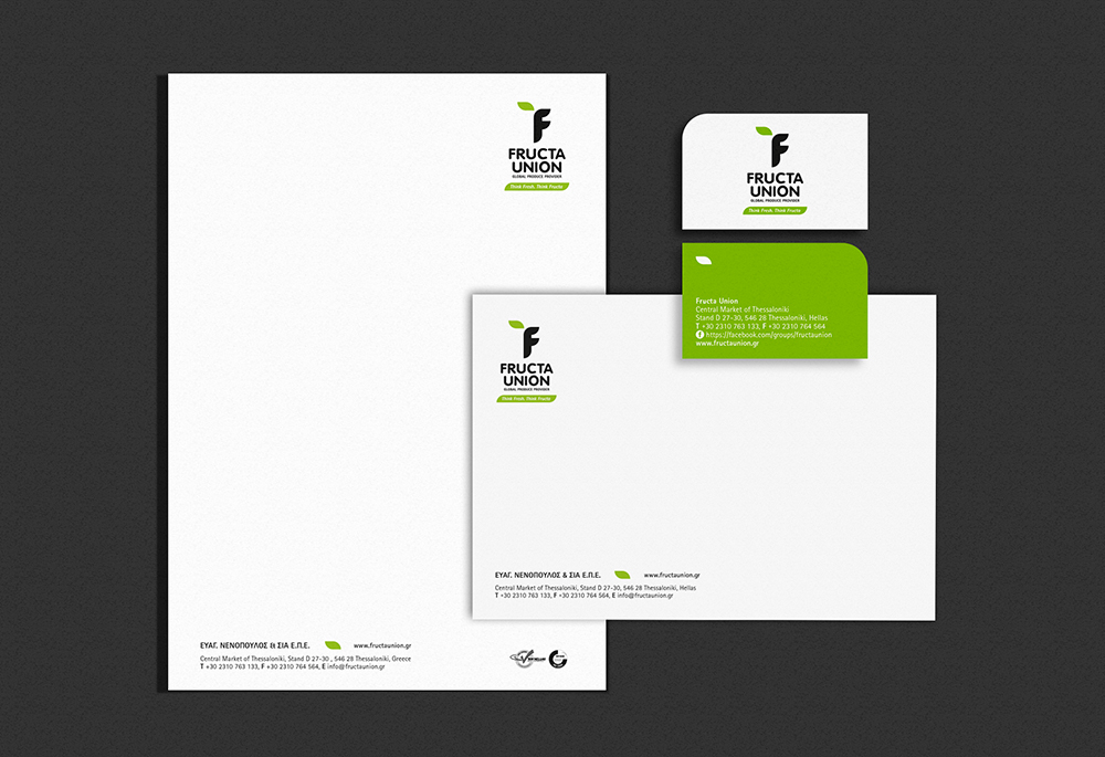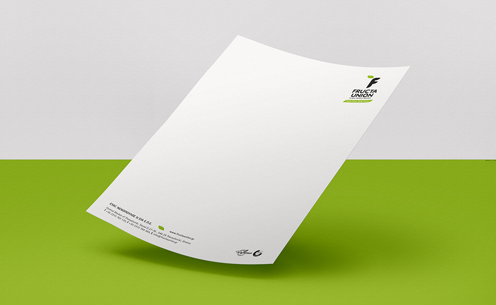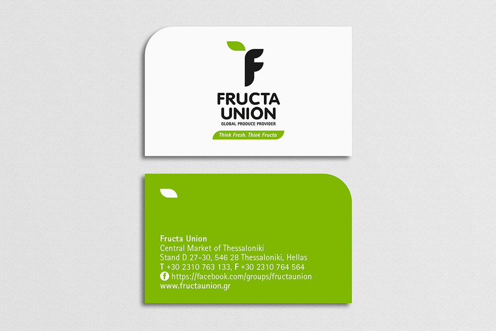 Επιχείρηση εμπορίας φρούτων και λαχανικών, η Fructa Union έχει ως αποστολή τη διακίνηση προϊόντων που παραδίδονται στο κοινό φρέσκα με αναλλοίωτα τα ποιοτικά χαρακτηριστικά τους. Με επιδίωξη της να αποτυπώσει αυτό ακριβώς το δεδομένο, η Pad αναπαράγει αλλεπάλληλα ένα στιλιζαρισμένο στοιχείο-φύλλο συνθέτοντας το αρχικό του ονόματος της εταιρείας, το οποίο τελικά μετατρέπει σε καρπό με την προσθήκη του ίδιου στοιχείου του φύλλου στο πραγματικό του χρώμα.