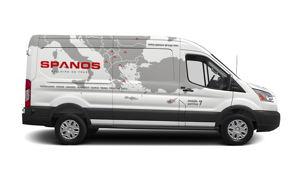 Η Spanos Group είναι μια εταιρία με παρουσία μεγαλύτερη των 25 ετών στην εμπορία, κατασκευή και επισκευή δομικών μηχανημάτων και εξοπλισμών, καθώς και την παροχή εξειδικευμένων τεχνικών υπηρεσιών για τον κατασκευαστικό κλάδο. Ξεκινώντας από το δεδομένο ότι η οπτική ταυτότητα SPANOS οφείλει να αποπνέει τον ηγετικό χαρακτήρα της εταιρίας, η νέα εταιρική ταυτότητα βασίζεται στα στοιχεία της σταθερότητας, του κύρους και της εμπιστοσύνης μέσα από έναν λογότυπο που εντοπίζει στην απλότητα της δύναμης. Η έντονη, αυστηρή τυπογραφία κι ένα παιχνίδι με τη σκιά υπογραμμίζουν ότι τα σοβαρά οικοδομήματα δεν έχουν μόνο όψη αλλά και μέγεθος.