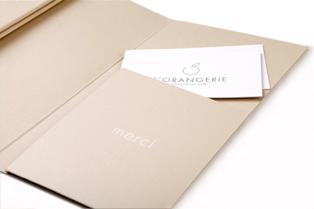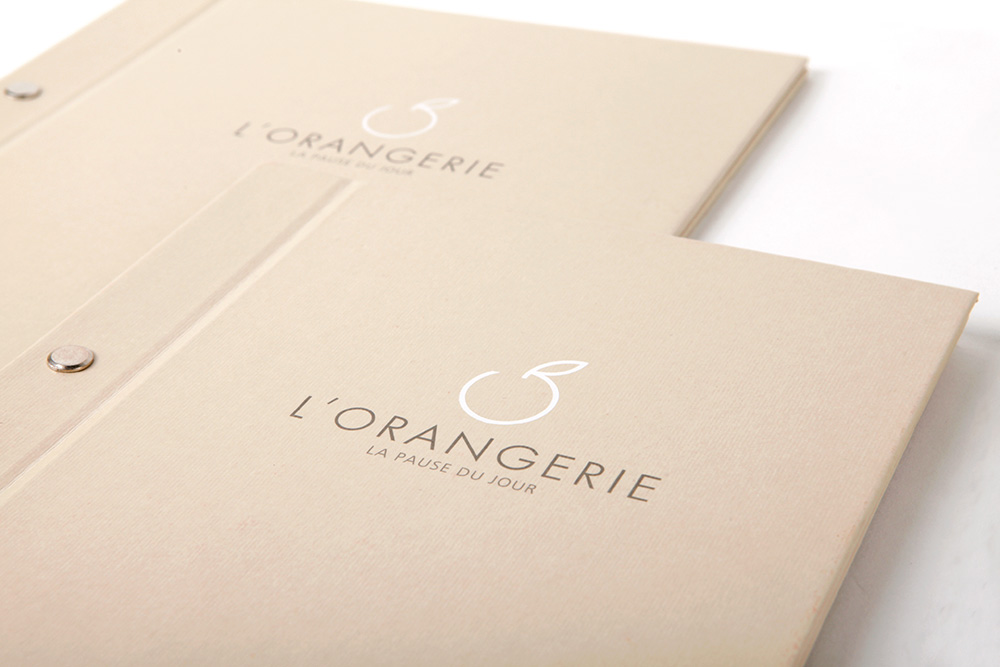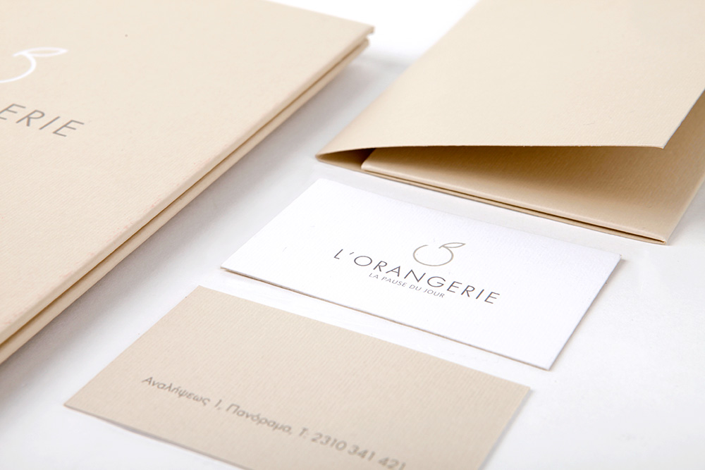 Με επιδίωξη την οπτική αποτύπωση της αίσθησης που αποπνέει η brasserie L’orangerie μέσα από μια πρόταση ολοκληρωμένης print επικοινωνίας, η οποία θα παίζει οργανικό ρόλο στην εικόνα του χώρου, η Pad σχεδιάζει τον λογότυπο και τις εφαρμογές του λογαριασμού, χρησιμοποιώντας μια παλέτα από ελαφρές αποχρώσεις και καθαρή τυπογραφία που συμβαδίζει αισθητικά και αναδεικνύει το κεντρικό σύμβολο.